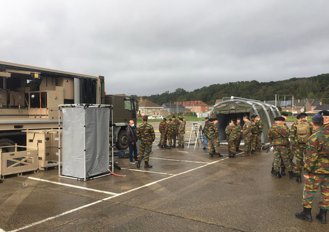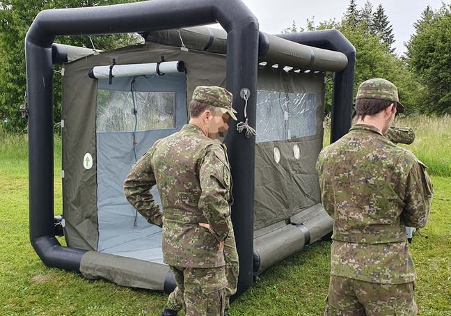 CBRN solutions can be made as a system of tents or a combination of tents with technological containers. These can be equipped for dry and wet decontamination and detection of substances on people and equipment.