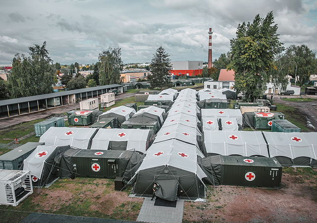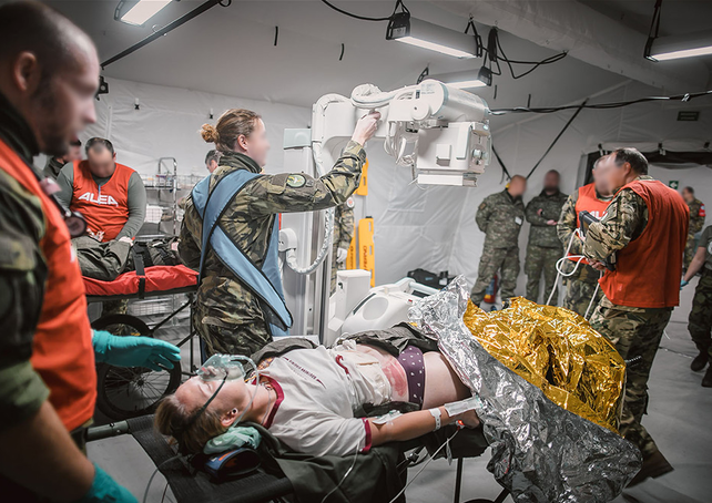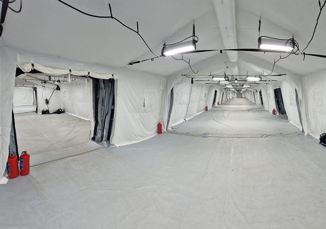 Field hospitals can be built in multiple tiers (ROLE1 and ROLE2) and are independent of any external power grid. They are highly modular and designed to provide a clean and safe environment to deliver advanced healthcare in any setting for extended periods.