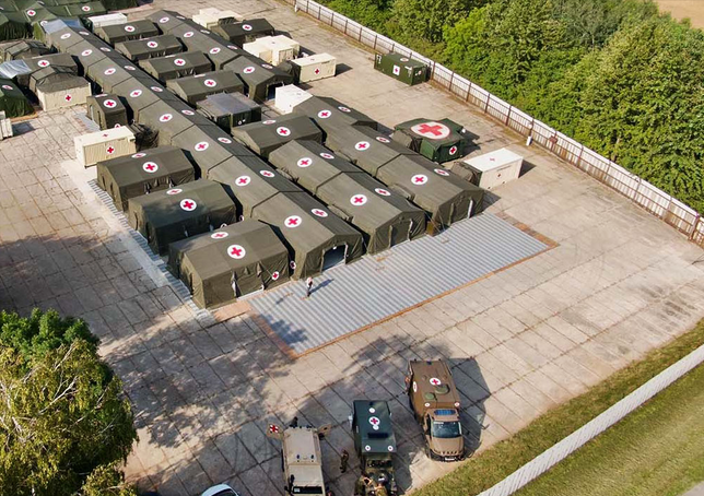 Mobile field hospitals can be built in multiple tiers (ROLE1 and ROLE2) and are independent of any external power grid. They are highly modular and designed to provide a clean and safe environment to deliver advanced healthcare in any setting for extended periods.