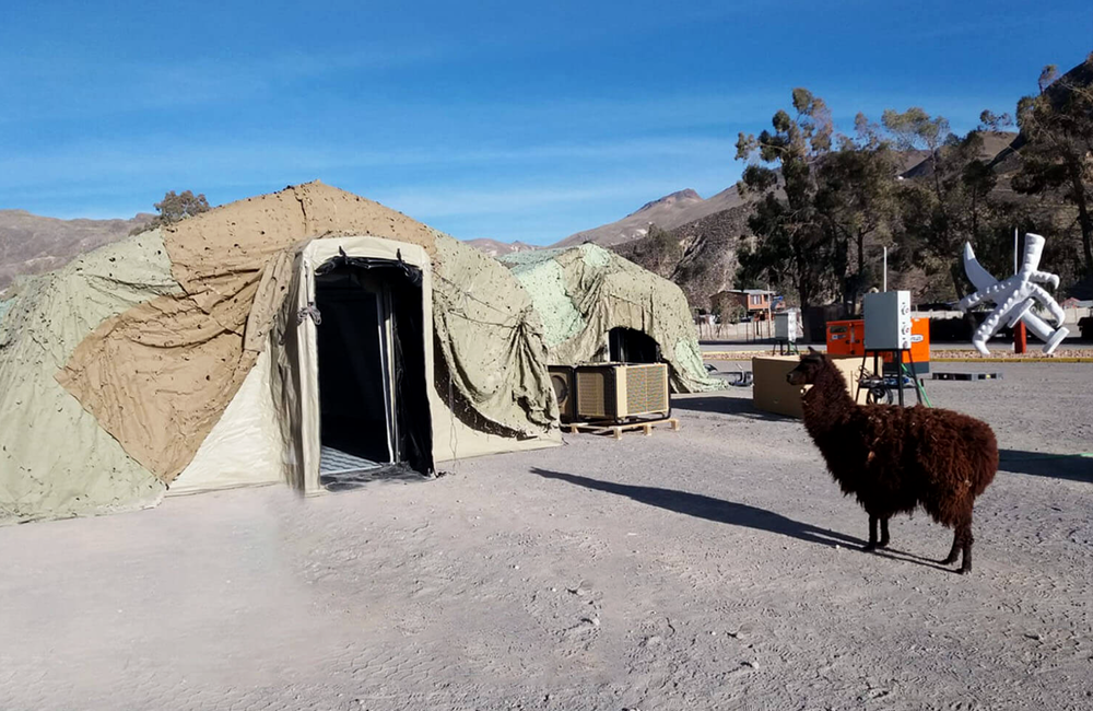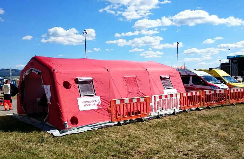 PGK General Purpose Tent is a modular inflatable tent designed for general and military use, e.g. as an emergency relief shelter; military field command post or humanitarian mission HQ, military accomodation or storage unit; base camp; mobile hospital; etc. The PGK tent can be ordered in a wide range of sizes and its modular design allows for combining units to make larger or multi room setups.