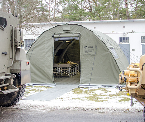 PRO Heavy Duty Tents can be equipped with a sun visor, inner liner, porch, additional floor and many other accessories. This versatile shelter is suitable for a wide range of applications, from general use to long-term deployments such as decontamination units, base camps, field hospitals, accommodation and refugee camps.